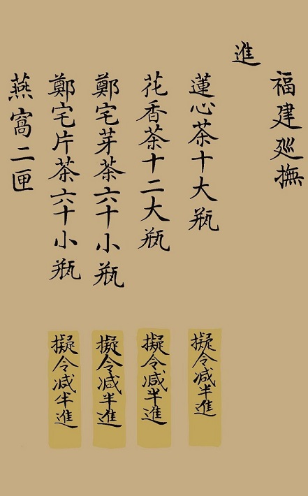 《雍正朝宫中奏折档》中记载的贡茶以及雍正皇帝赏赐大臣贡茶的种类颇多,见有“武彝(夷)莲心茶”、“小种茶”、“郑宅茶”“金兰茶”、“花香茶”、“六安茶”、“松萝茶”“银针茶”等诸多茶品。